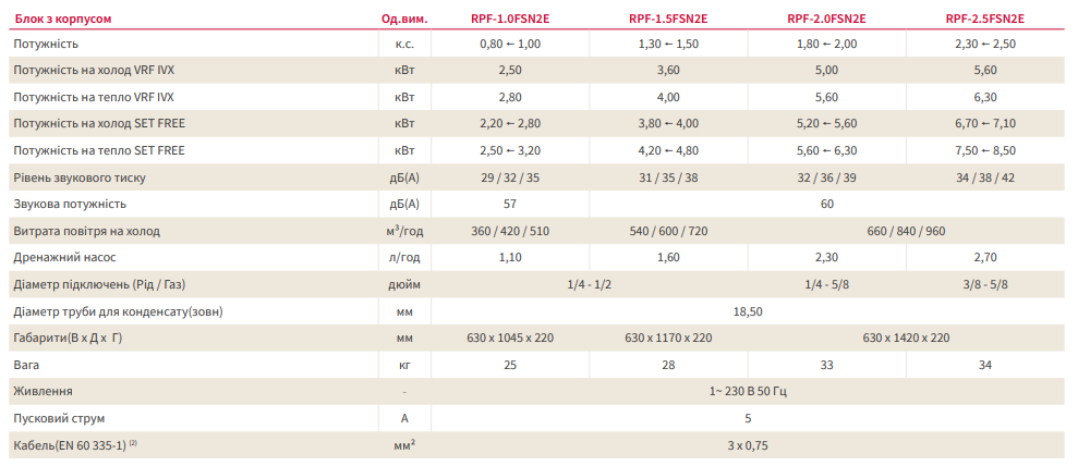 | Підлогові внутрішні блоки Hitachi RPF-1.0FSN2E з корпусом | 25 м² | Ціну уточнюйте | |