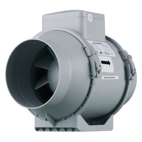 • Знімний центральний блок із двигуном, крильчаткою і клемною коробкою кріпиться до патрубків за допомогою спеціальних хомутів на защіпках. Це робить обслуговування вентилятора максимально простим та зручним. Немає необхідності розбирати і демонтувати вентилятор повністю – достатньо вийняти центральний блок із корпусу та здійснити сервісне обслуговування.